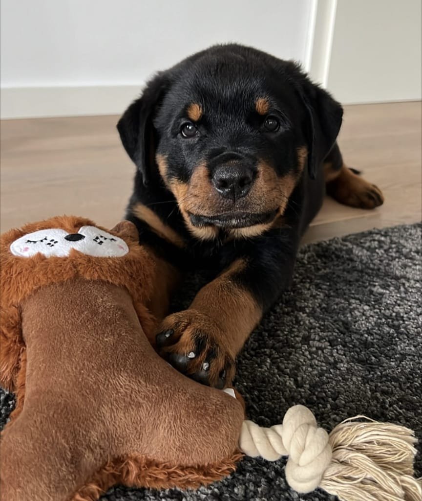 Bred with purpose and raised in a loving environment, Diesel already shows impressive early development in temperament, structure, and responsiveness. His curious yet composed nature makes him a perfect fit for homes looking for a Rottweiler that balances affection with alertness.